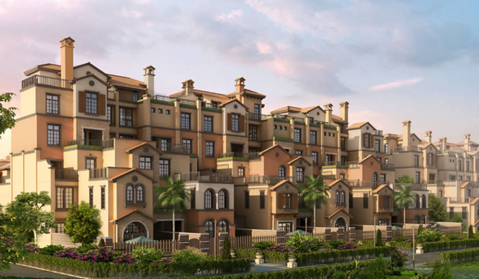 立面風格采用西班牙風格。為凸顯本地塊產品的尊貴特性,采用高檔飾漆,面磚及西班牙特色的坡頂,再用淺色涂料襯托。在檐口、門頭、屋頂等重點部位,精雕細琢,濃墨重彩,在大面積上簡潔明快的處理,顯示出了本地塊低調的奢華,又不失當地特有的沉穩以及歷史厚重感的特色。
