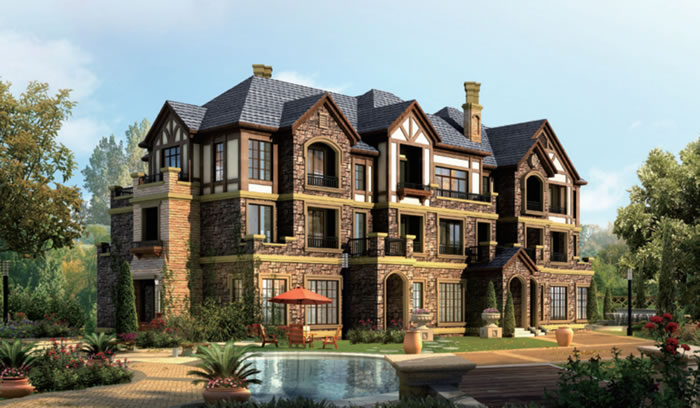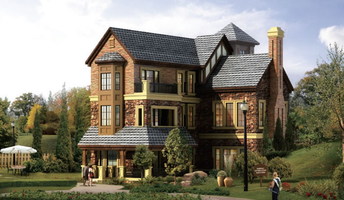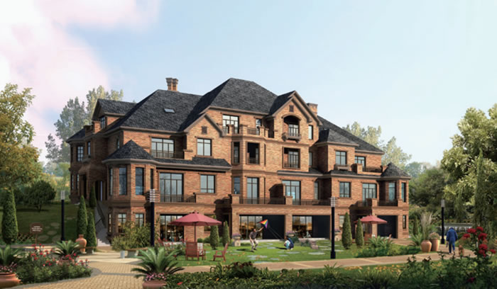 建筑整體堅固結實,色彩豐富,線條流暢,簡單大方,處處體現著古典文化追求活力和力量的自由性和開放性,這些特征同樣也體現在細節上,北美建筑所采用的裝飾元素精簡而有效,視覺符號簡潔而明朗,包含著源于歐洲、美洲等各種文化的個性和多元性的血統基因。北美風格別墅更加充分地表現了對自然和人性的尊重,它通過對自然元素和傳統文化的放大與還原,將居者的內心世界的細膩而完整地進行寫意,準確地表達主人真實的品位和格調,于當代形成了一種“臨山而居,近水而棲”新山水人居文化。